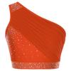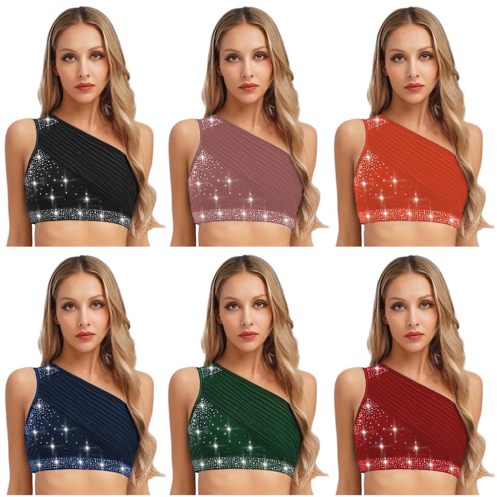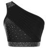 Women's Lyrical Dance Crop Top S-XXL: One Shoulder Ruched Mesh Overlay Rhinestone Design for Modern Dance Performance