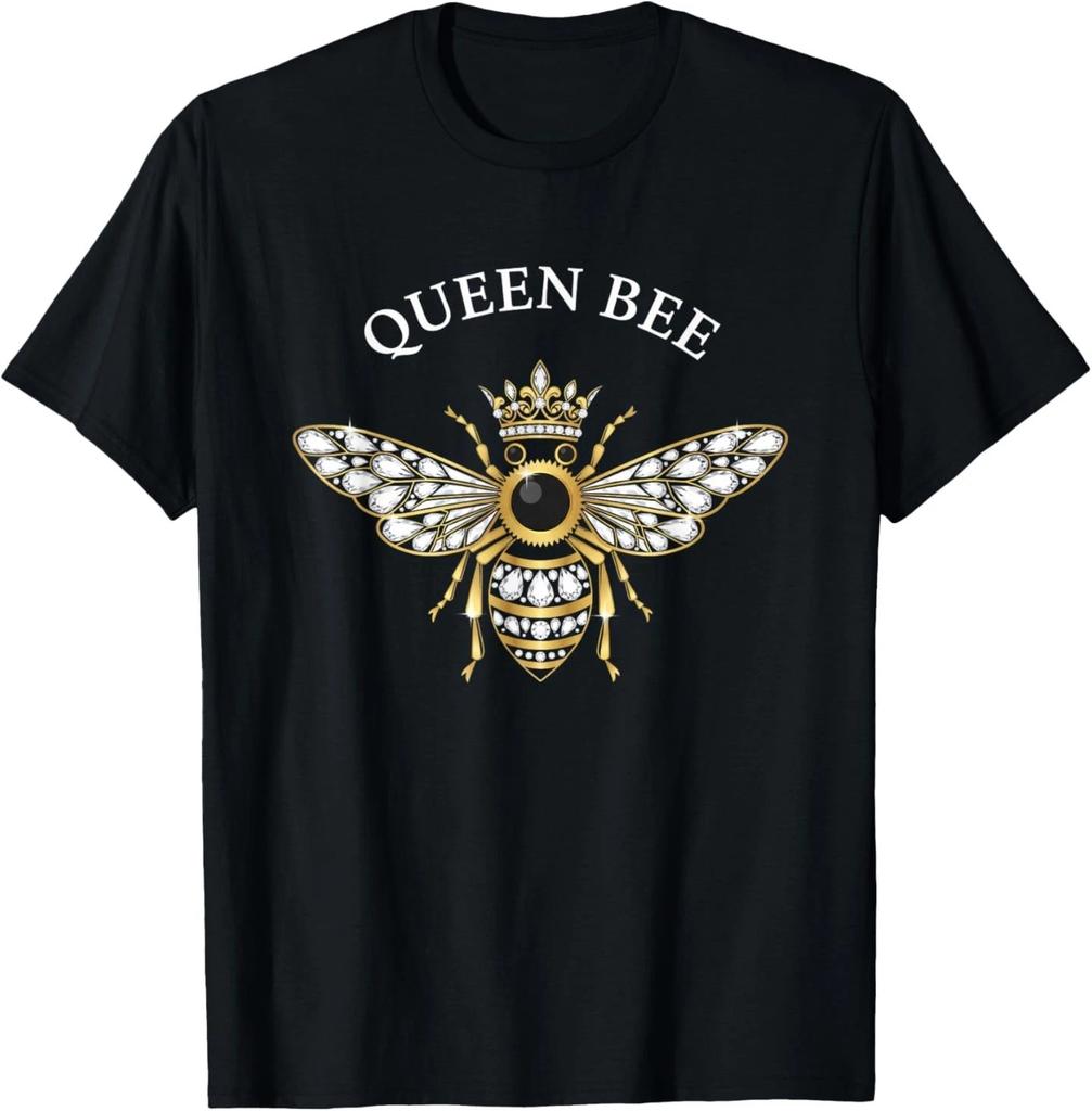 Queen Bee Floral Crown Bee Illustration Nature Outdoors T-Shirt