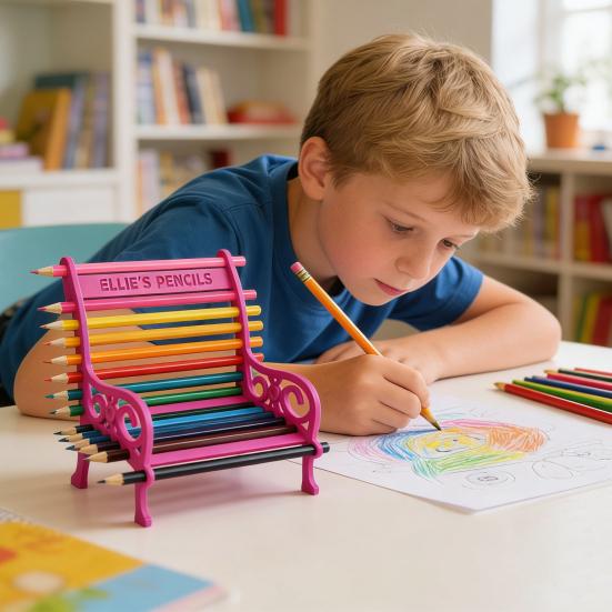The elegant bench-shaped design with European carving details adds a decorative touch to any desk, classroom, or studio. A practical and stylish solution for organizing your creative tools.