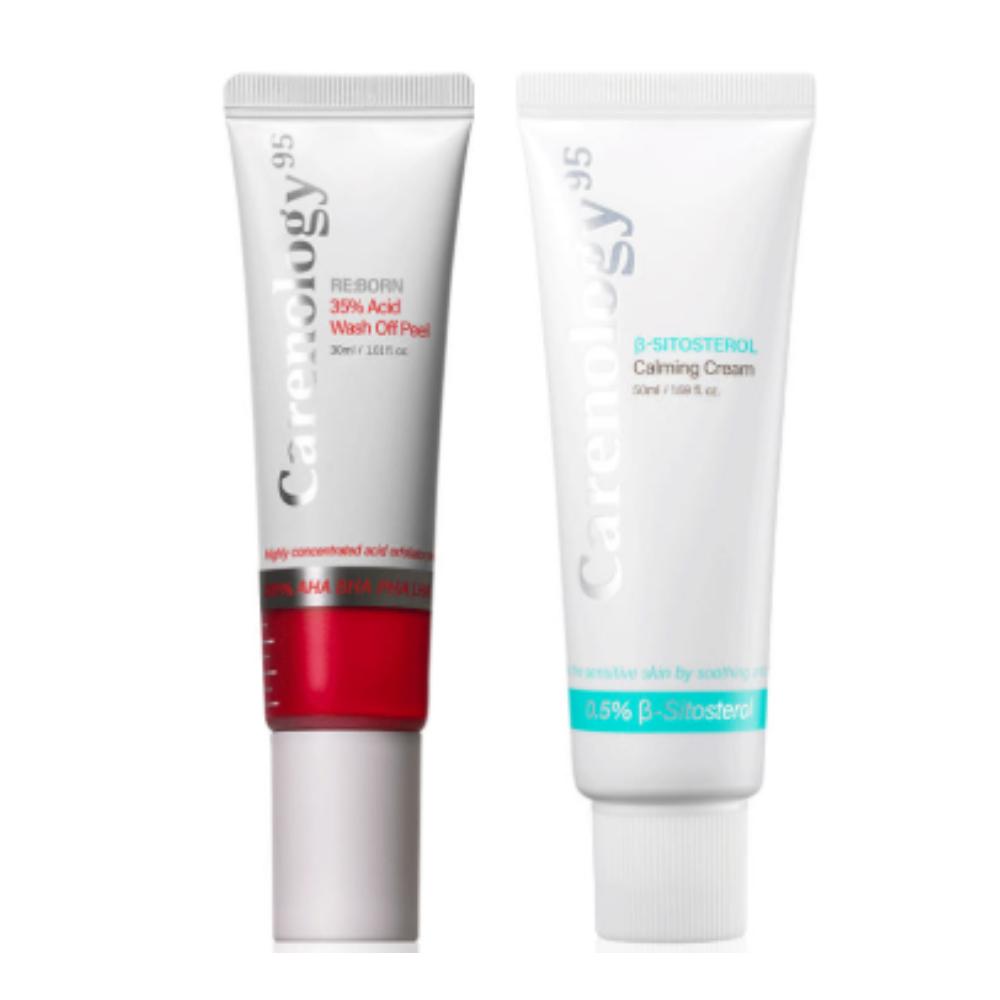 Carenology Peeling and Calming Set, Korean Wash-off Peel, Blue Tansy Recovery Cream, Gentle Exfoliation Mask, Soothing Face Cream for Redness, K-beauty Skin Smoothing Duo, AHA BHA Liquid Mask, South Korea Cosmetic Set, Sensitive Skin Recovery, Moisturizing Calming Cream
