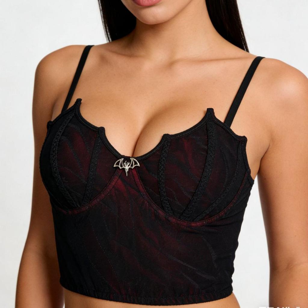 Dark Gothic Milk Silk Patchwork Corset Cami with Bat Cup Bra