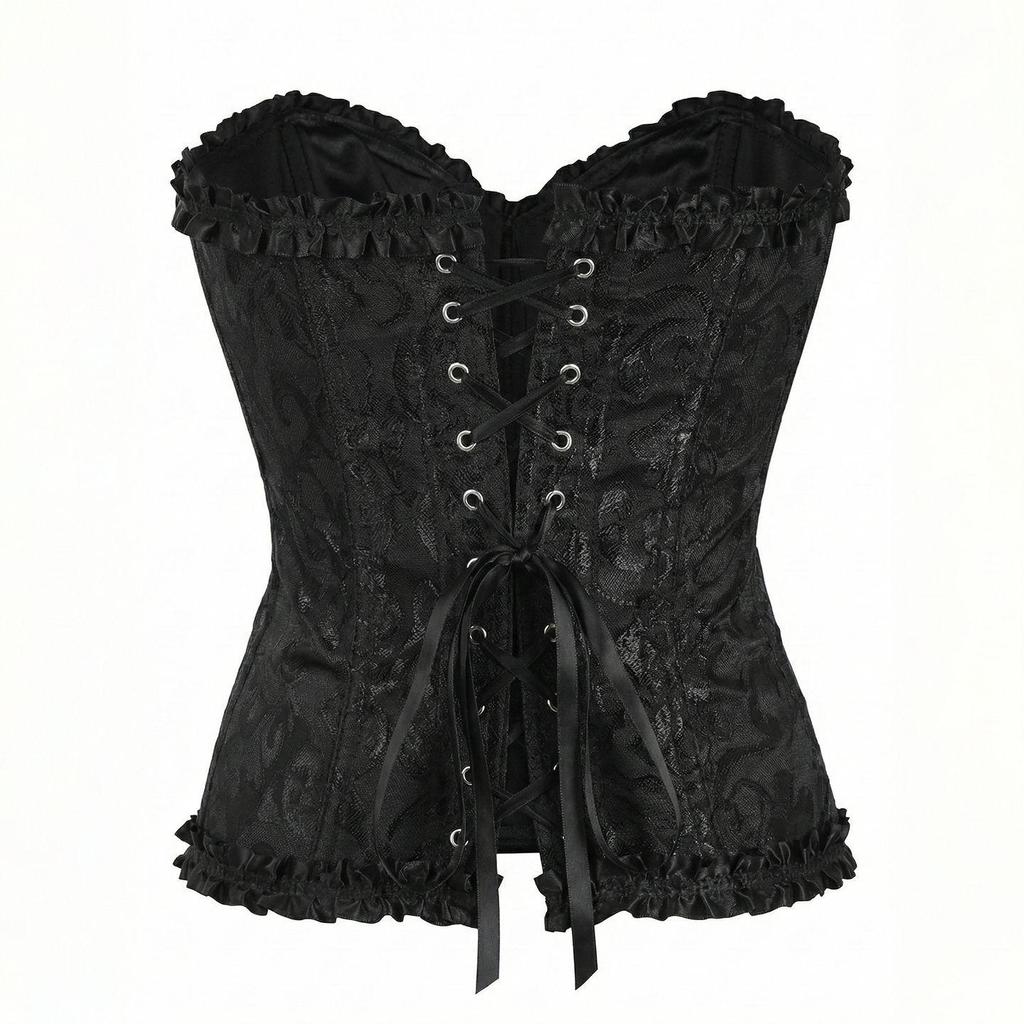 Experience elegance and support with this exquisite corset, designed with intricate lotus leaf lace embroidery. Offering both style and functionality, it provides exceptional tummy control and back support, making it a perfect choice for those who seek a touch of sophistication along with comfort. Crafted entirely from high-quality polyester, this piece ensures durability and comfort, suitable for a variety of occasions.