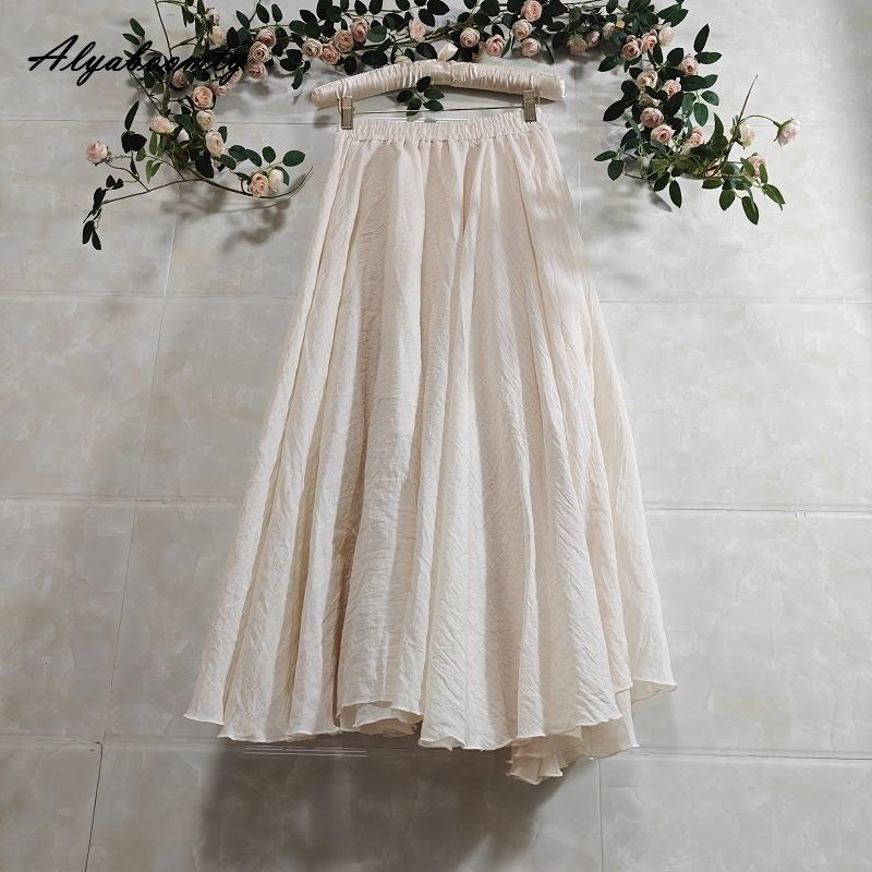 Korean Style Spring Summer Women Solid Basic Skirt Elastic Waist Simple Cotton Linen Skirt Elegant Feminine Ladies' Chic Skirt