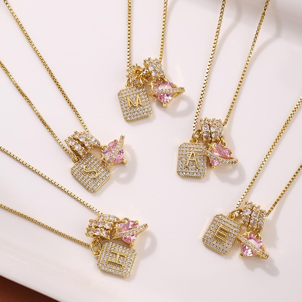 Luxe Heart Initial Necklace: 18k Gold-Plated Diamond Clavicle Chain