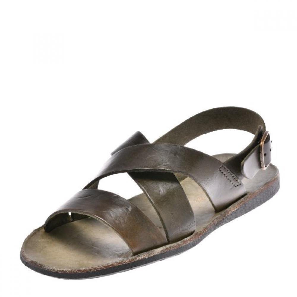 The BRADOR Women's X-Strap Sandals feature a vintage leather texture and are characterized by their washing process. With a leather sole without cushioning, they provide a comfortable wearing experience and unique appeal with a design that may differ from side to side.