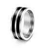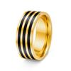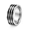 Japanese Korean INS Style Black Stripe Stainless Steel Couple Ring Set