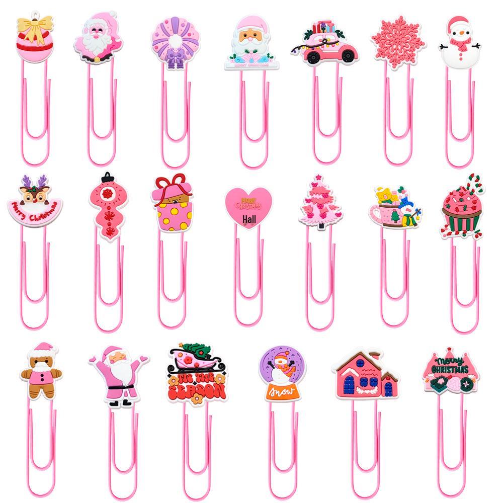 Pink Cartoon Christmas Bookmark Clips - Cute, Large, Colored Page Markers for Office Supplies