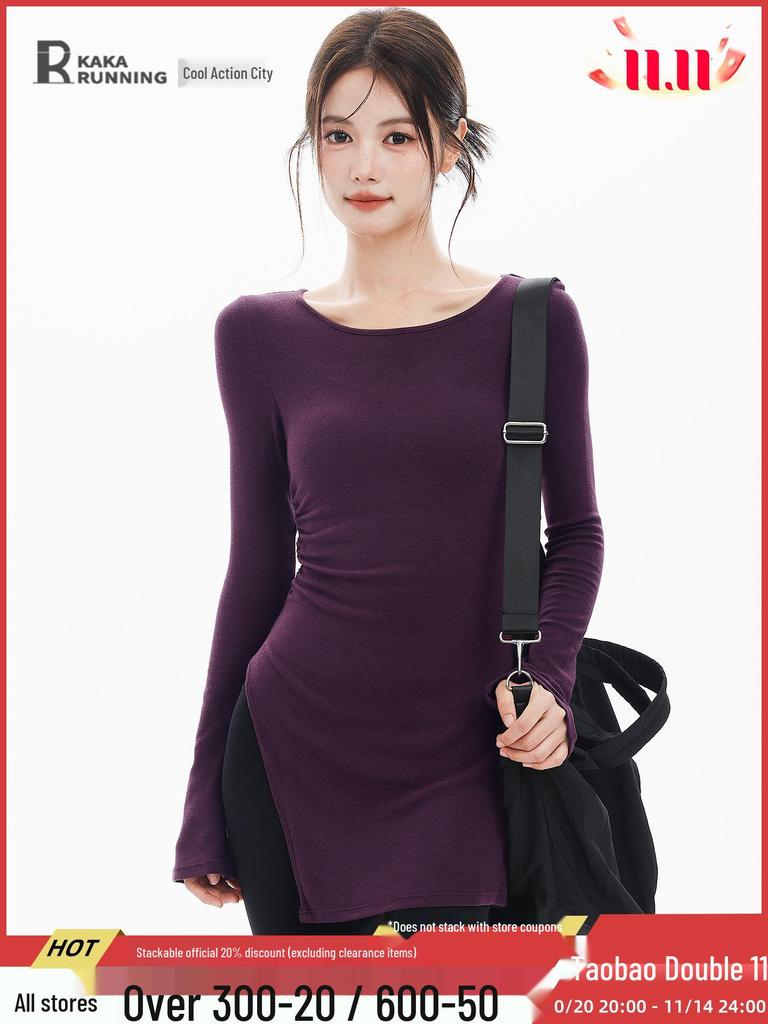 Run Kaka Purple Mid-Length Slit Long Sleeve Yoga Top