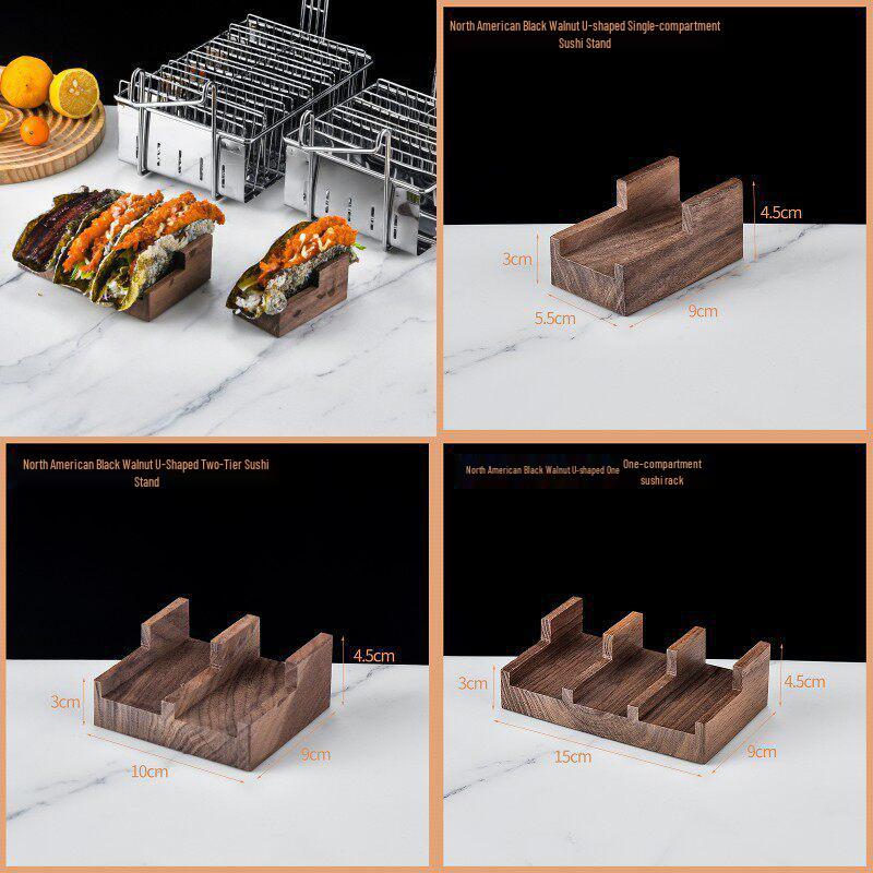 Sushi Tray U-Shaped Solid Wood Nori Holder - Creative Japanese Cuisine Plating Dish for Hand Roll and Taco Presentation