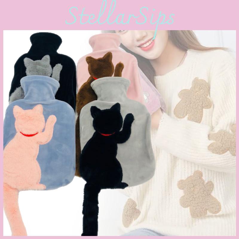 Adorable Plush Cat Design Water Injection Hot Water Bag Soft Durable Pvc Material For Cozy Warmth