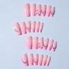 24pcs Square Pink French Manicure Fake Nails, Press On Nails,Nail Stickers, 3D Bow And Design, Acrylic Material, Women And Girls Nail Art Supplies