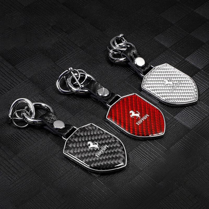 Carbon Fiber Matel Car Logo Keychain Keyring Key Chain Accessories for Ferrari Roma 488 SF90 Stradale Spider Portofino LaFerrari