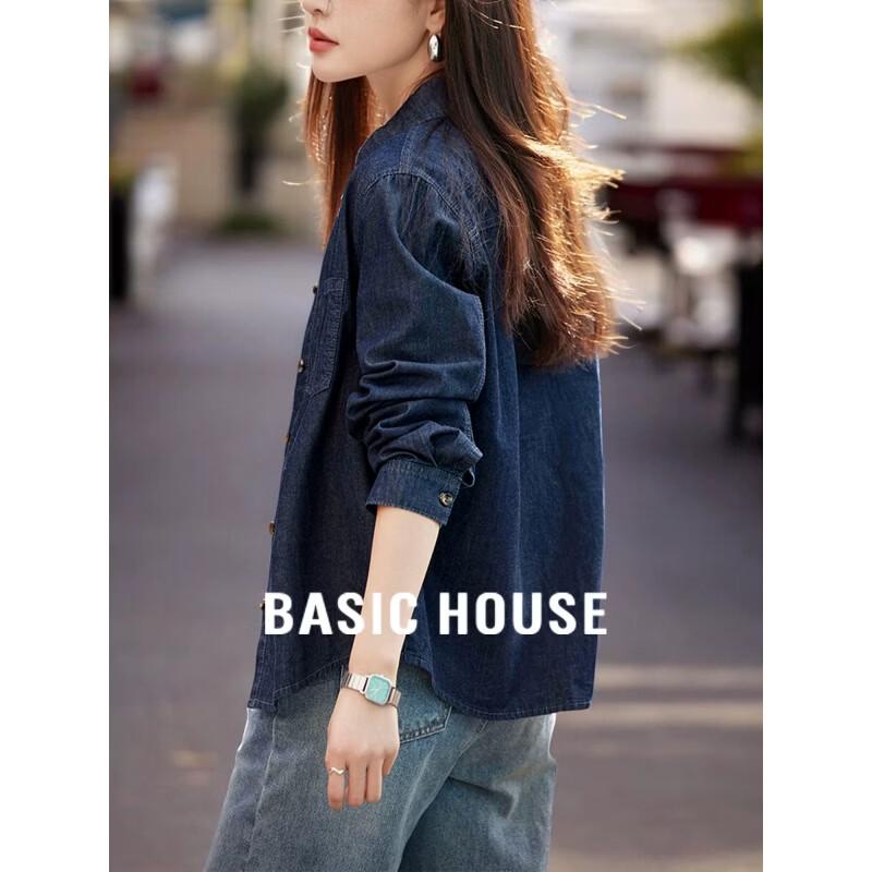 Basic House Retro Blue Denim Shirt Jacket for Women