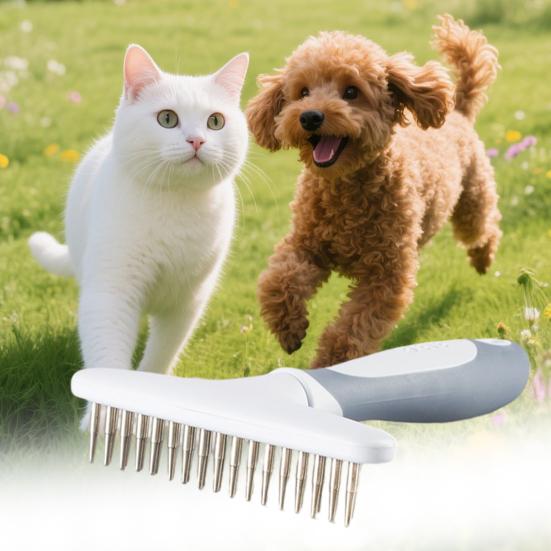 Its double-row dense needle design efficiently penetrates deep into the coat to loosen knots, remove floating and dead hair, leaving your pets fur fluffy and smooth.