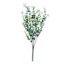 Featuring delicately textured petals and eucalyptus-shaped green leaves, this artificial flower faithfully replicates the intricate form of natural blooms, making it well-suited for modern spaces.