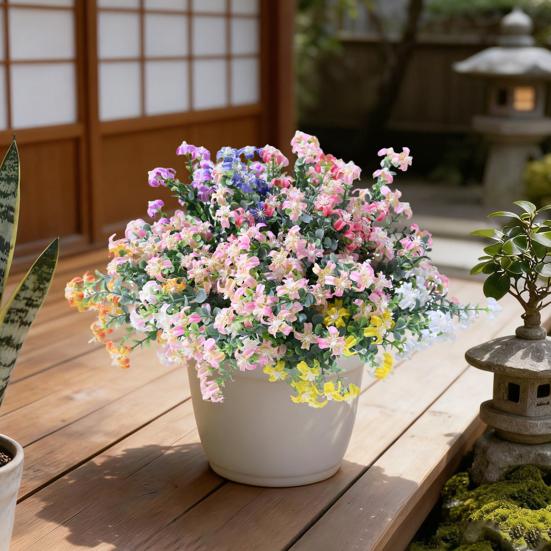 This artificial flower is maintenance-free and weather-resistant, crafted from high-quality simulated materials that resist sun and rain without fading or wilting. It requires no watering, fertilizing, or pruning, ensuring long-lasting vibrant color indoors or outdoors, even in humid environments. Ultra-light and portable, it fits seamlessly into any settingwhether as a home table centerpiece, garden accent, window display, party decoration, or wall hanging.