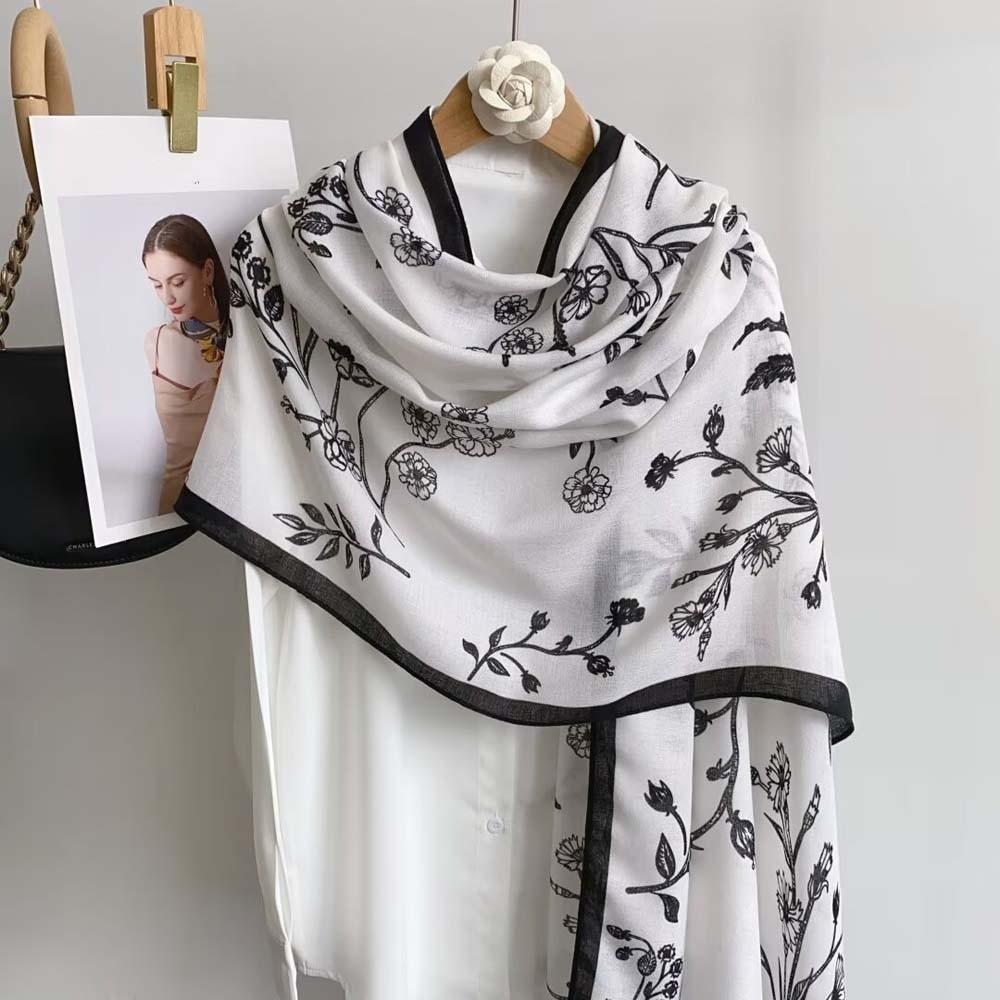 Bird Patterned Women Floral Scarf Long Sunscreen Headscarf Thin Large Shawl Clothing Accessories
