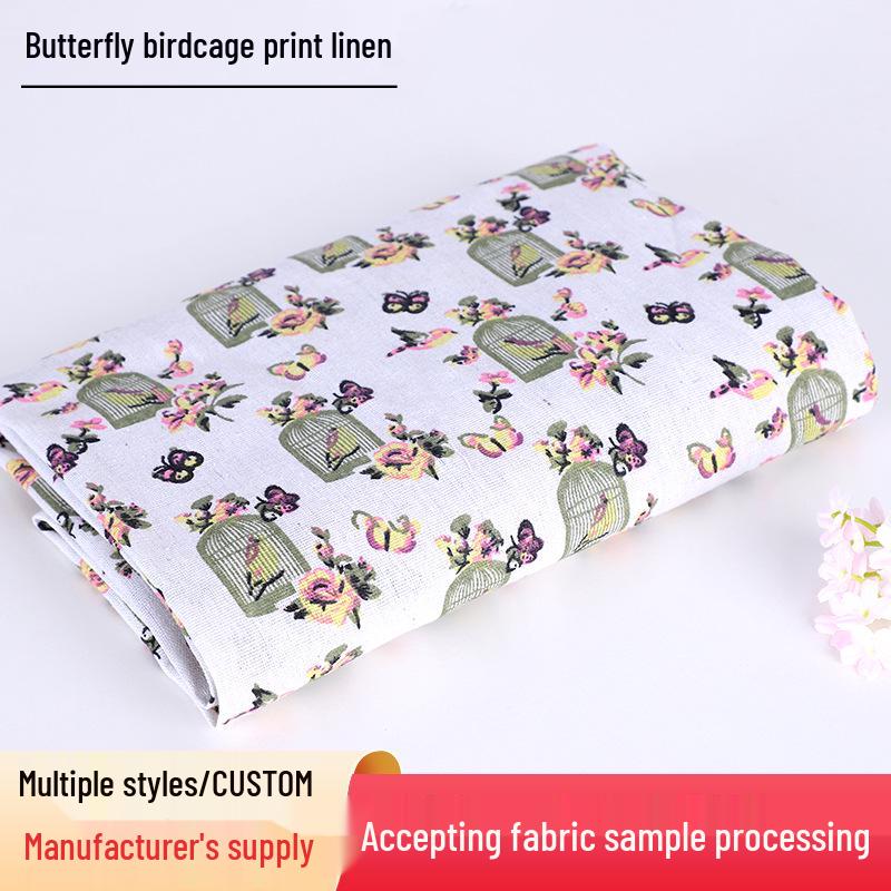 Butterfly and Bird Print Linen Cotton Fabric for Fashion, Clothing Linings, Curtains, Tablecloths, and Throw Pillows.