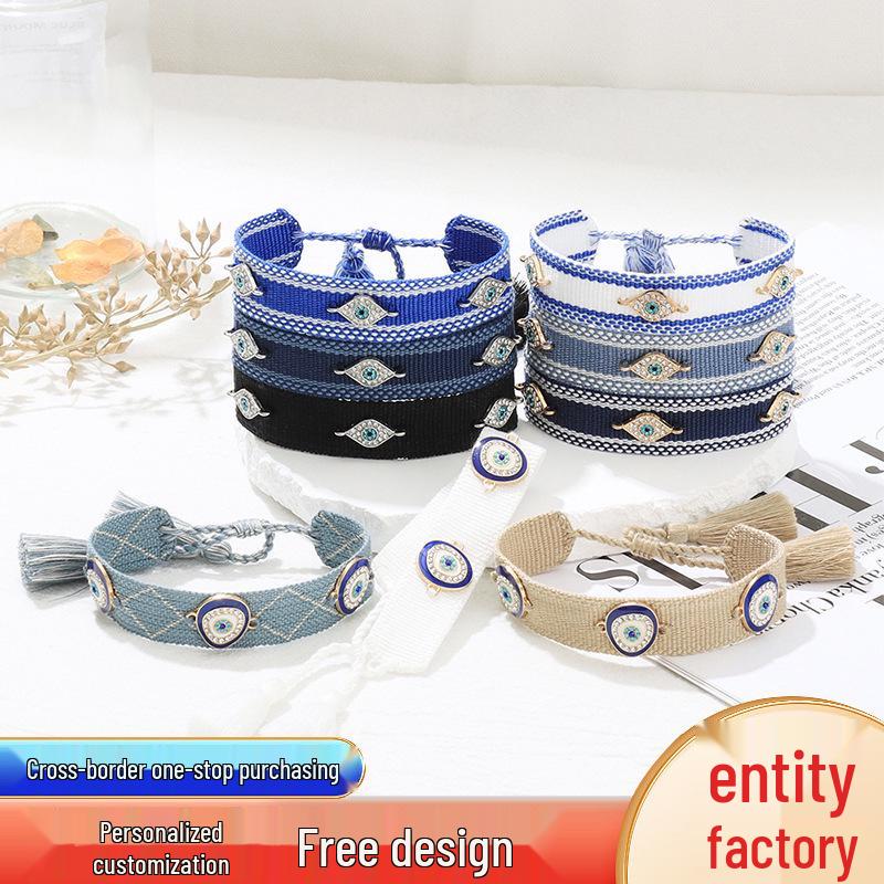 Handmade Braided Blue Evil Eye Bracelet - European & American Style Lucky Charm for Women