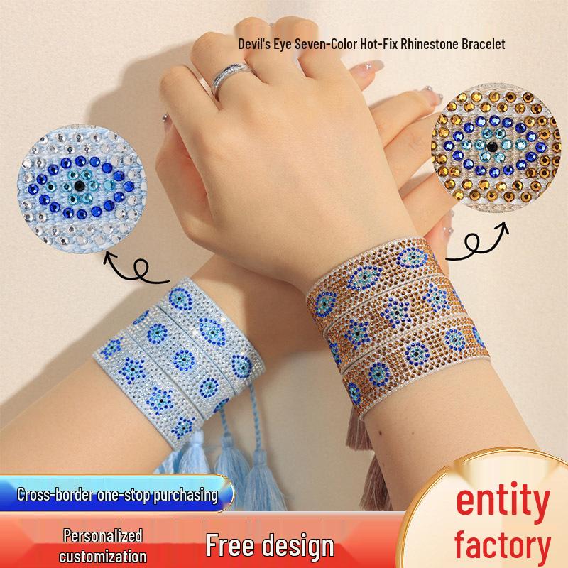 Devil's Eye Rhinestone Friendship Bracelet - Blue Eye Handmade Tassel Bracelet