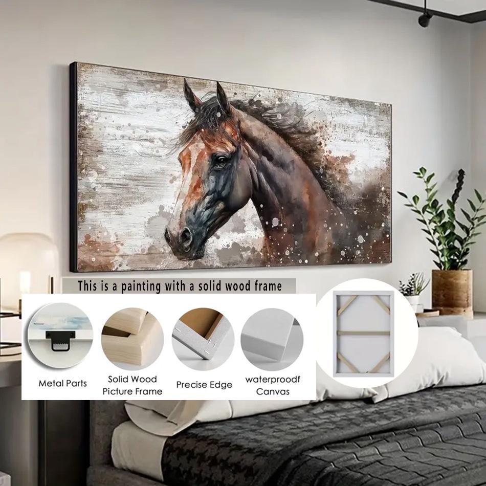Large Fashion Horse Canvas Mural - Brown Horse Portrait Wall Decor for Living Room or Bedroom