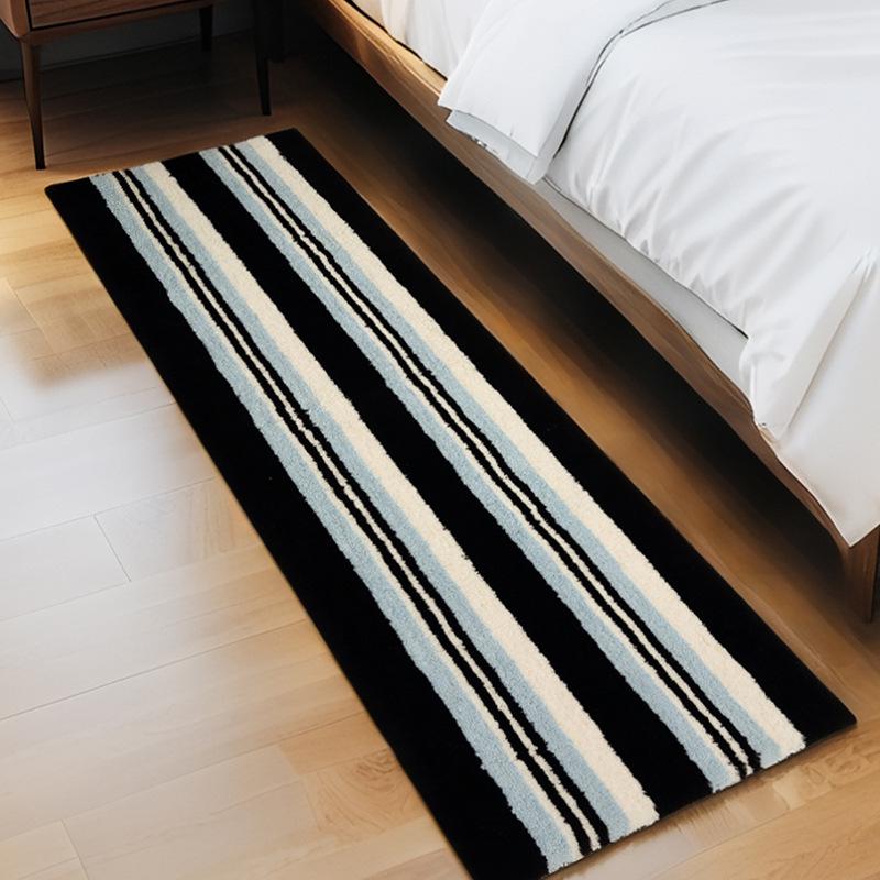 Nordic Style Black & White Striped Non-Slip Bedroom Rug - Wear-Resistant Long Floor Mat for Living Room