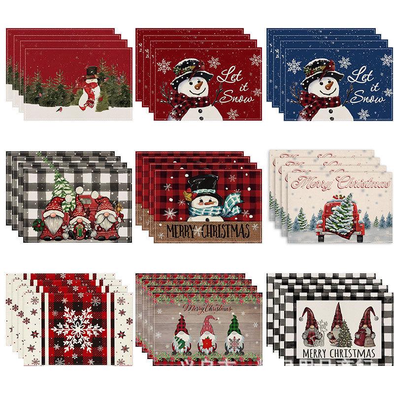 Christmas Snowman & Snowflake Plaid Insulated Placemat - Festive Table Decoration