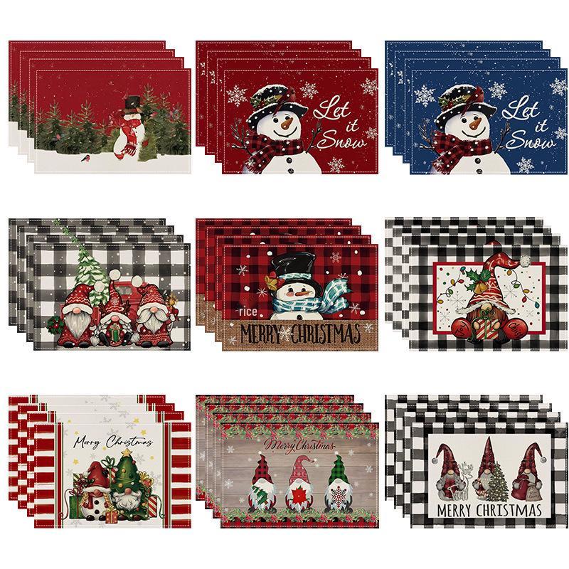 Christmas Snowman Snowflake Plaid Table Mats - Festive Insulated Linen Tablecloth for Party Decoration