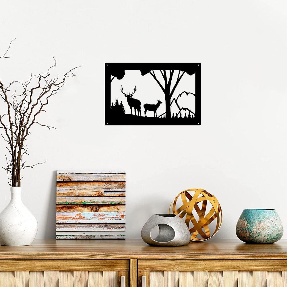 Metal Elk Wall Art Wildlife Decoration Sticker 13.8x9 Inches for Bedroom Living Room Home