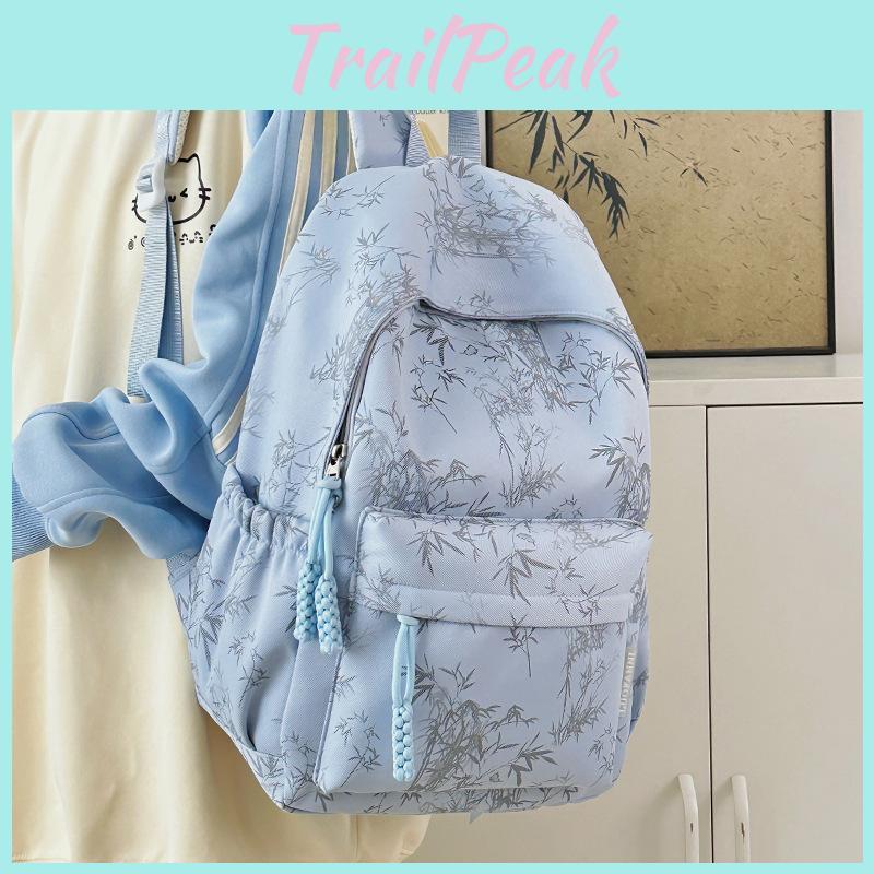 Simple Solid Color Bamboo Pattern Student Backpack For Casual Travel And School Use