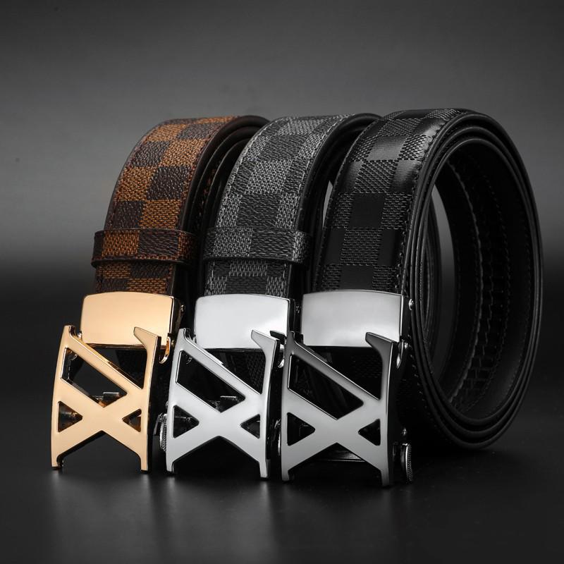 Men's Printed Graffiti Plaid Cowhide Belt with Automatic Buckle - XL Business Casual