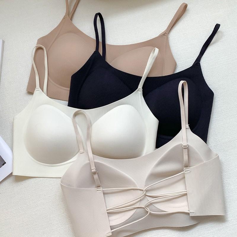 Women's Seamless Strappy Ice Silk Bra: Thin, Breathable, Wire-Free, with Large Open Back and Fixed Cups.