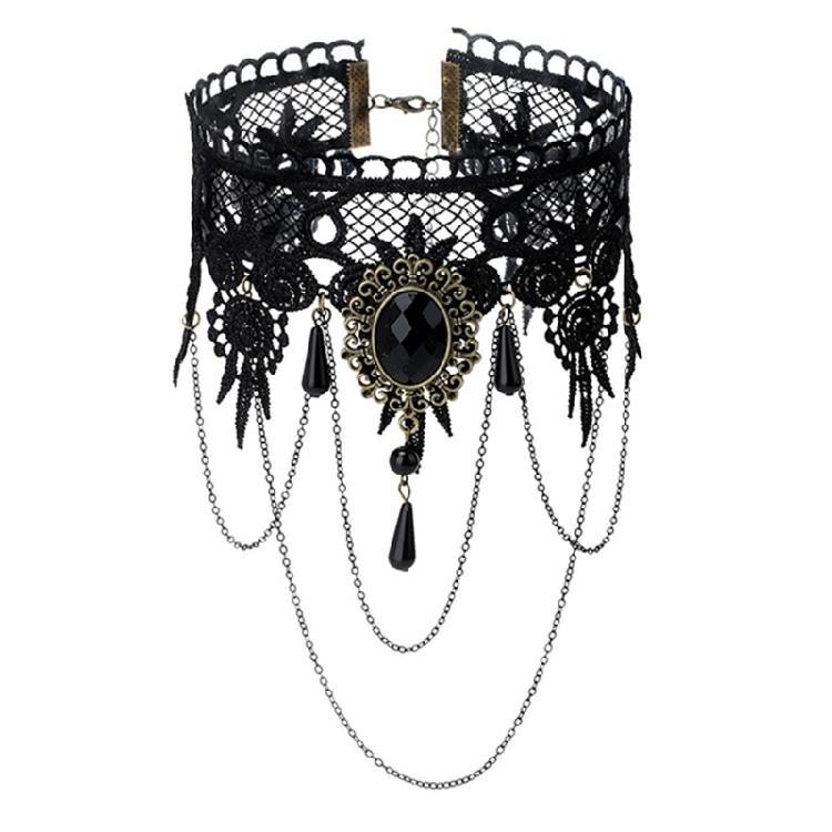 Chain Lace Choker Necklace Vintage Tassel Chain Necklace Punk Crystal Collar