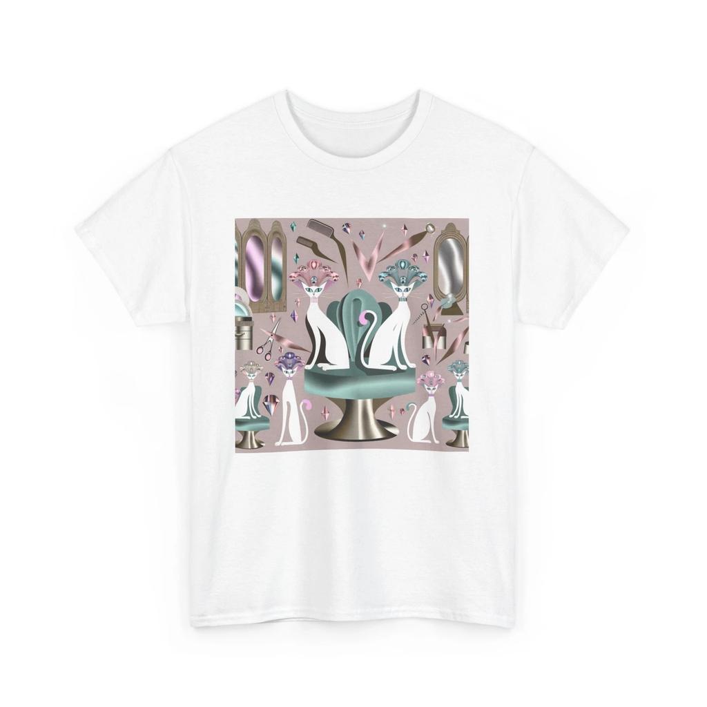 Unisex Adult T Shirt Retro Cat Salon Art Deco Glamour Abstract Hair Dresser Tee