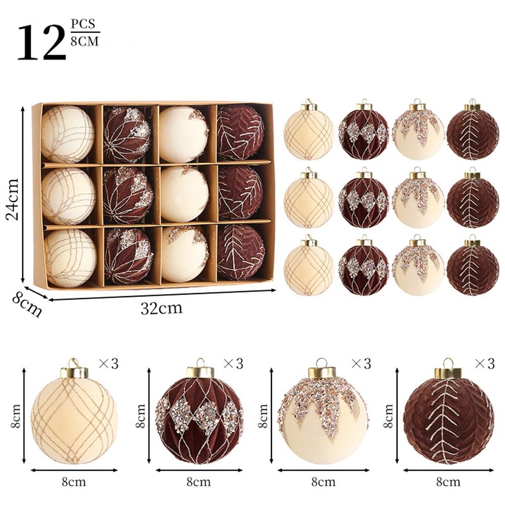 Holiday Tree Decorations Flocked Balls Decor Christmas Celebrations Brown White Complete Set Of Ornaments Cozy Atmosphere