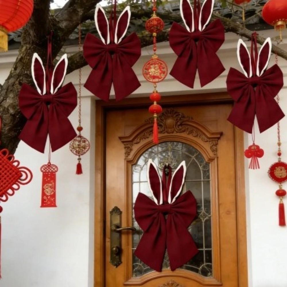 Creative Multi-colored Bunny Ear Bow Soft Multi-purpose Wreath Bow Cute Polyester Easter Hanging Item Holiday Celebration