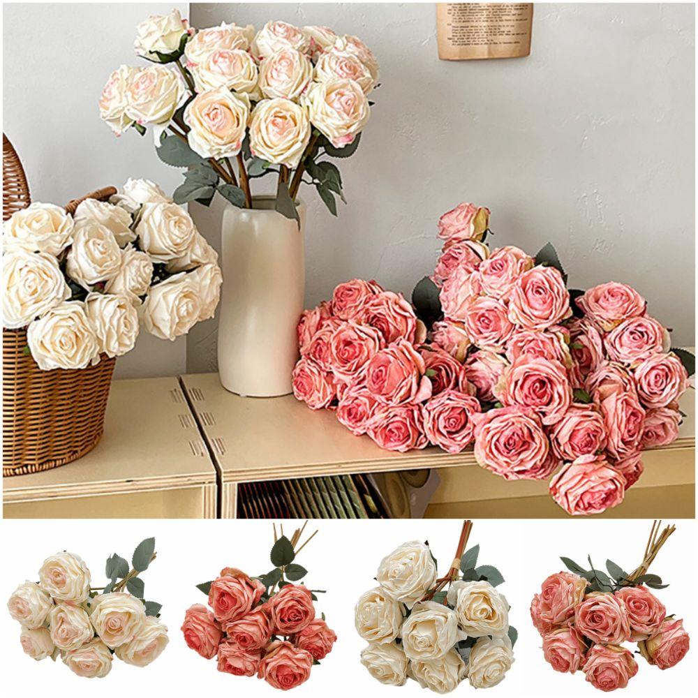 7PCS/Bundle 7 Head Rose Artificial Flower Silk Petals Faux Flower Desktop Ornament