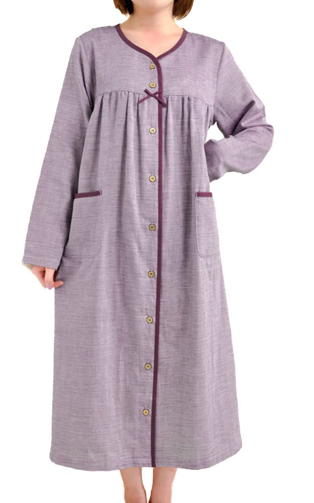 Cotton Double Gauze Front Long Perfect for Maternity Sizes 33047 [K's Eye] Skin-friendly 100% Dress, Opening, Sleeves, Pajamas. M-L, L-LL, 3L, 4L.