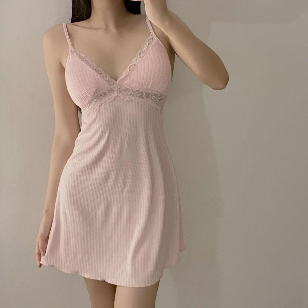 Women's Ice Silk Lace Camisole Nightgown with Chest Pads - Slimming Summer Style for Inner or Outer Wear.