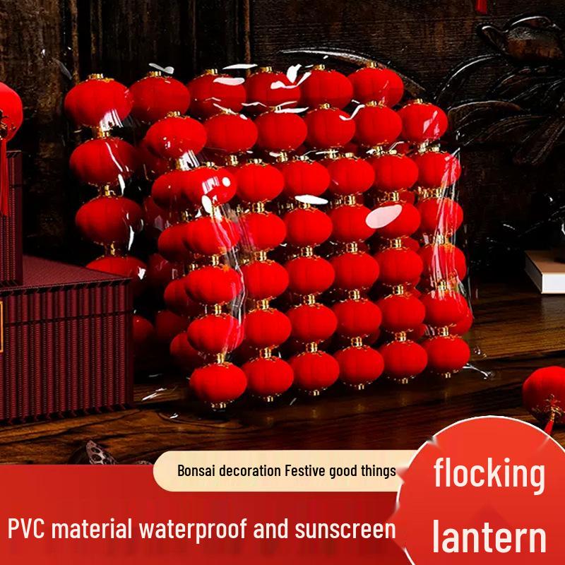 Small Red Wedding Lanterns: Flocked Round Lanterns for New Year, Hanging Ornaments, Bonsai & Balcony Decor Strings