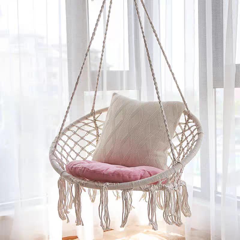 Nordic Style Cotton Rope Hanging Chair with Tassels – Indoor/Outdoor Swing for Balcony and B&B