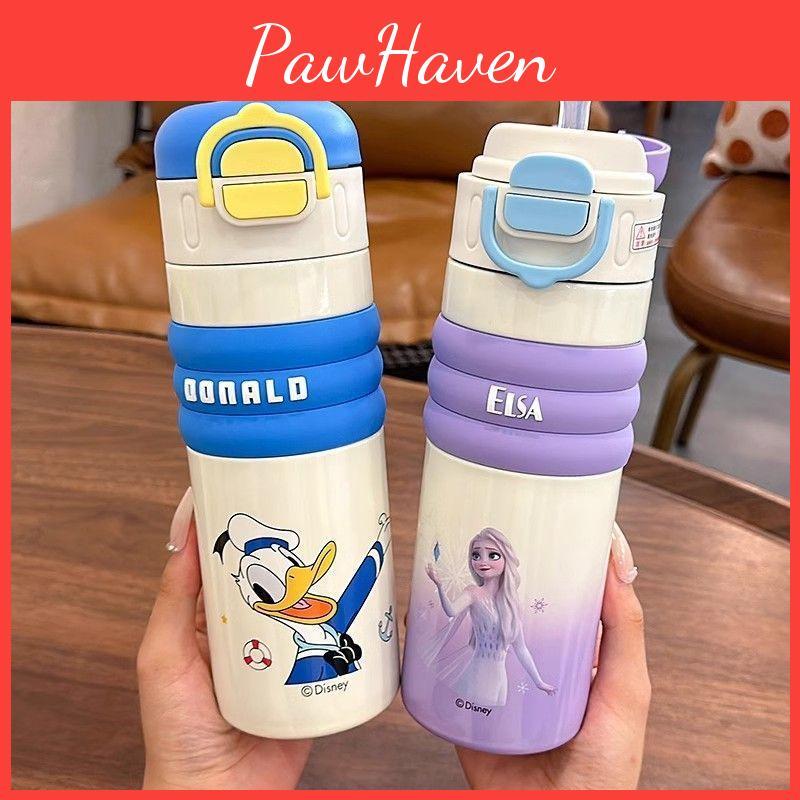 Donald Duck Childrens Thermos Bottle With Double Drink Straw For School Use