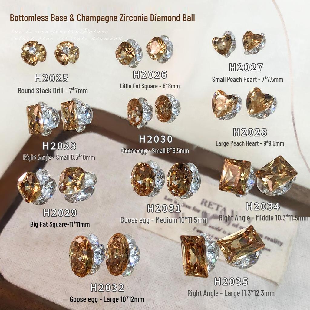 Champagne Bottomless Tray Zircon Nail Art Accessories - Super Flash Heart Dove Egg Stacked Drill Ball.