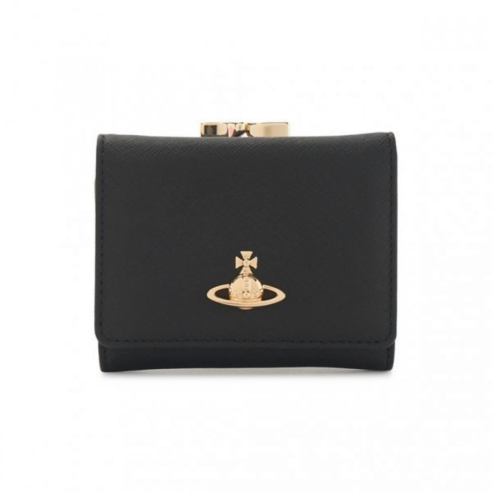 The Vivienne Westwood Women's Wallet 5115002MW L001N N402 is a black small frame wallet featuring the ORB design from the 26SS season. This wallet is classified as a women's bifold wallet and has a small frame coin wallet style. Key features include Vivienne Westwood's signature ORB decoration, with a compact frame design that includes a coin wallet function. The material is presumed to be high-quality leather, falling under the luxury imported wallet category.