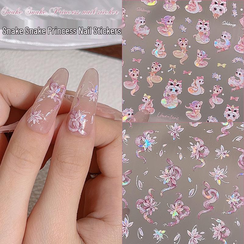 2025 Zodiac Snake Princess Nail Stickers & Shell Glitter Powder