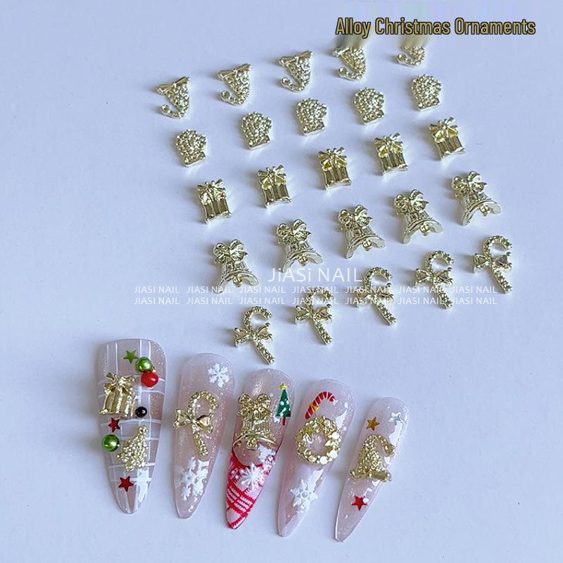 Silver Alloy Christmas Bow Nail Decorations: Light Luxury Styles with Snowflake & Bell Designs