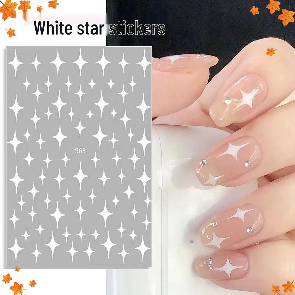 Starry Glitter Nail Stickers: Four-Pointed Star, Laser Gold, Silver, Black & White Adhesive Manicure Stickers