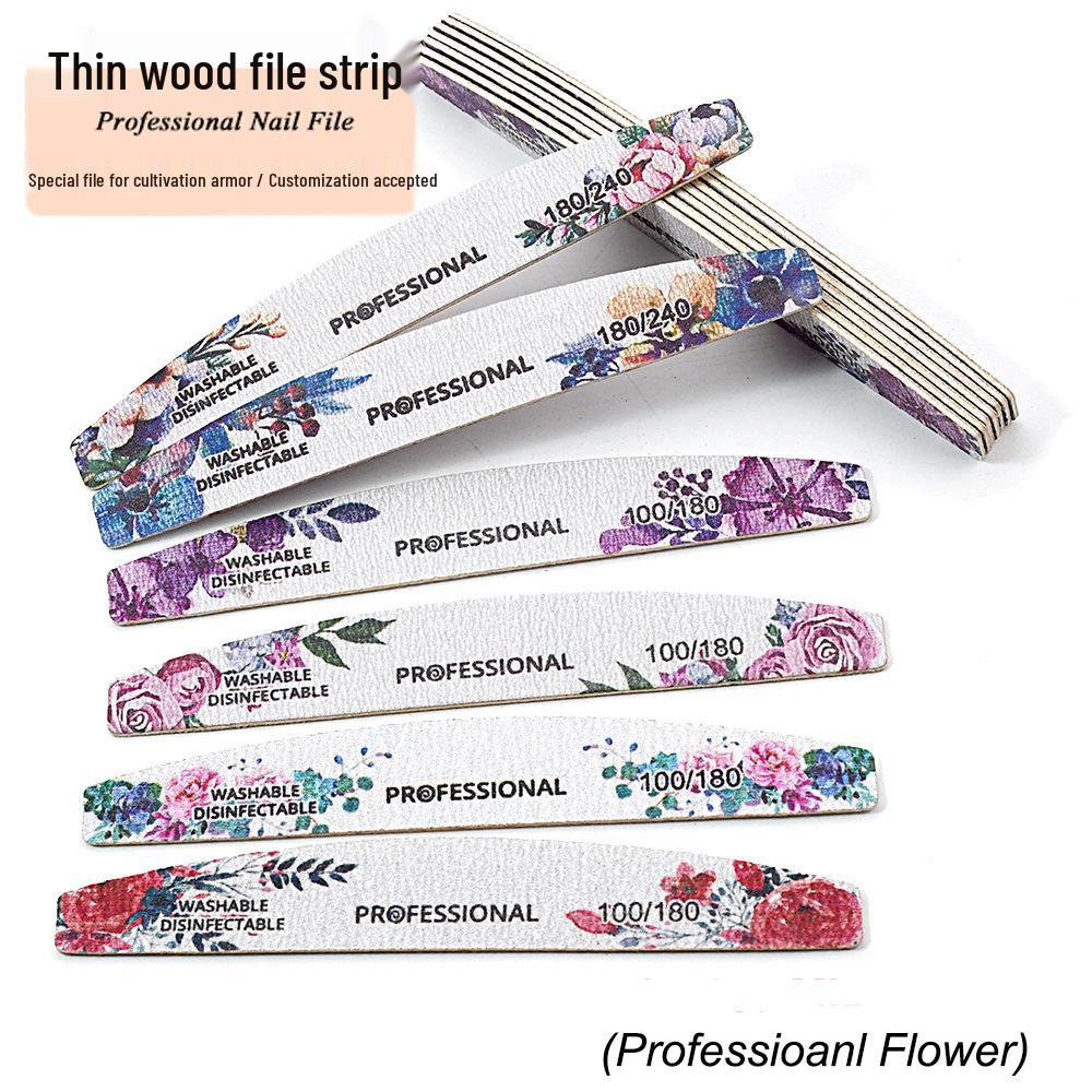 Available: Gray Professional Wood Nail File with Rose Design - Thin, Washable, for Shaping and Polishing Nails