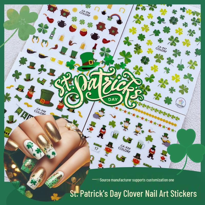 CA Nail Art Stickers - St. Patrick's Day Shamrock & Four-Leaf Clover Designs