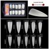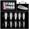 100-Piece Blister Box: Trapezoidal, Transparent Fake Nails - Full & Half Stick, Water Drop Designs